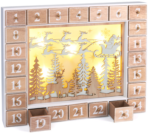 BRUBAKER reusable advent calendar made of wood for filling - Flying Santa Claus with LED lighting - Do It Yourself Christmas calendar